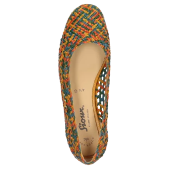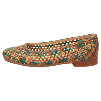 Ballerine légère pour l’été à la fabrication très raffinée en cuir de chèvre tressé. La semelle intérieure en cuir rembourrée sur toute sa longueur et la semelle extérieure légère en caoutchouc assurent un confort de marche optimal.