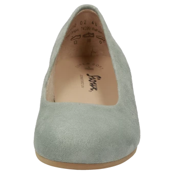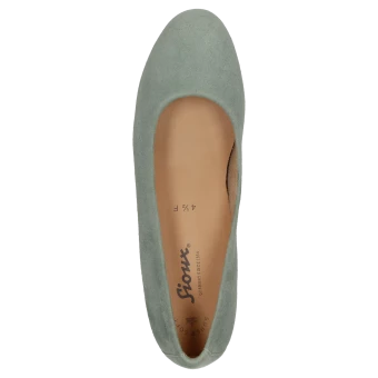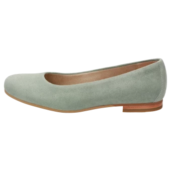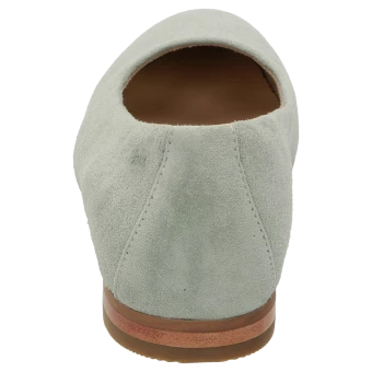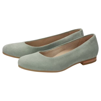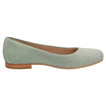 Ballerine fine pour femme en cuir velours de chèvre souple, avec doublure confortable en tissu microfibre, largeur F standard. La semelle ergonomique en cuir est rembourrée sur toute sa longueur et la semelle extérieure en caoutchouc, légère et souple, procure un confort de marche fabuleux.