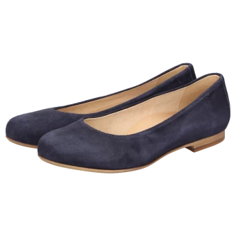 Ballerine fine pour femme en cuir velours de chèvre souple, avec doublure confortable en tissu microfibre et en largeur affinée. La semelle ergonomique en cuir est rembourrée sur toute sa longueur et la semelle légère et souple en caoutchouc procure un confort de marche optimal.