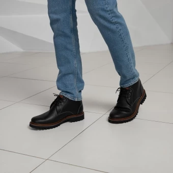 Bottine d’hiver au chaussant H bien large avec doublure en fourrure d’agneau douillette pour les jours de grand froid : cette chaussure montante à lacets pour homme est en cuir de veau huilé. La semelle intérieure revêtue de feutre est amovible de manière à pouvoir la remplacer par des semelles sur mesure. La semelle extérieure profilée en caoutchouc assure de bonnes sensations en marchant. La chaussure idéale pour tous ceux qui recherchent le confort !
