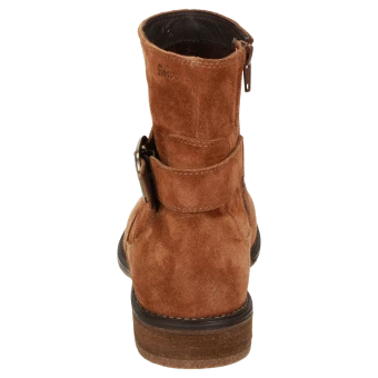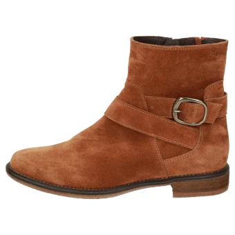 Bottine look sport en cuir velours de veau souple avec une fermeture éclair intérieure pour un enfilage facile et une lanière à boucle tendance. Doublée à l’intérieur en tissu microfibre respirant, semelle intérieure en cuir avec rembourrage moelleux sur toute sa longueur. Avec sa semelle en caoutchouc légère, cette bottine est le compagnon idéal pour l’automne et l’hiver.
