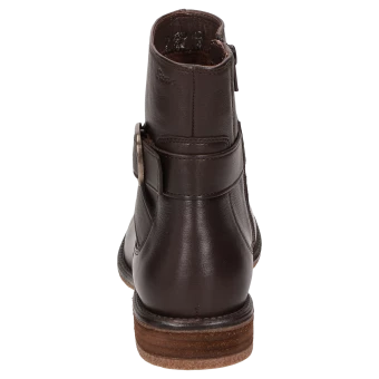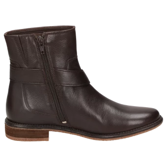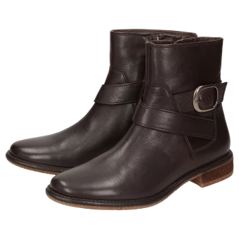 Bottine de style casual en cuir de veau souple agrémentée d’une bride et d’une boucle fantaisie, avec fermeture éclair intérieure pour un enfilage aisé. Doublure en tissu microfibre respirant avec première de propreté en cuir au rembourrage moelleux sur toute sa longueur. Avec sa semelle extérieure en caoutchouc léger, c’est la chaussure idéale pour l’automne et l’hiver.