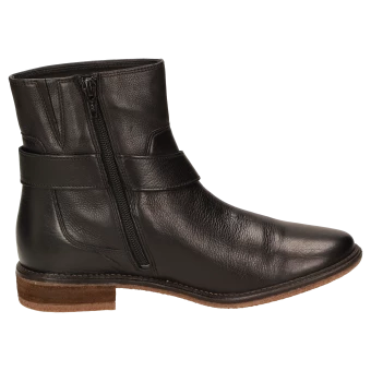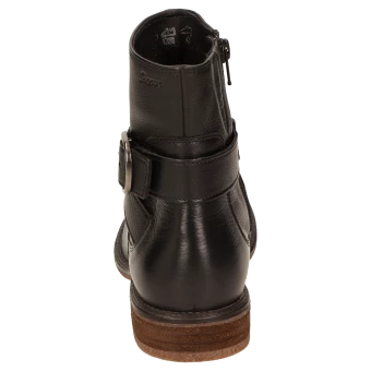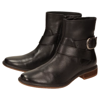 Bottine de style casual en cuir de veau souple agrémentée d’une bride et d’une boucle fantaisie, avec fermeture éclair intérieure pour un enfilage aisé. Doublure en tissu microfibre respirant avec première de propreté en cuir au rembourrage moelleux sur toute sa longueur. Avec sa semelle extérieure en caoutchouc léger, c’est la chaussure idéale pour l’automne et l’hiver.