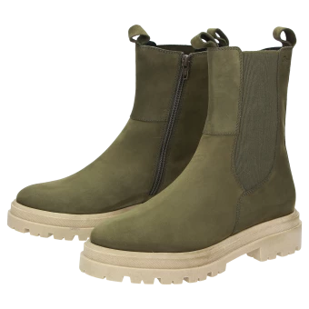 Botte tendance de style chelsea avec fermeture éclair intérieure et large empiècement élastique à l’extérieur, en cuir nubuck de vachette finement poncé. Doublure intérieure en tissu bien douillet avec première de propreté en cuir pouvant être remplacée par une semelle sur mesure. La solide semelle extérieure en caoutchouc à la trépointe marquante en fait une chaussure idéale pour l’automne et l’hiver.