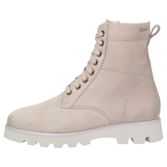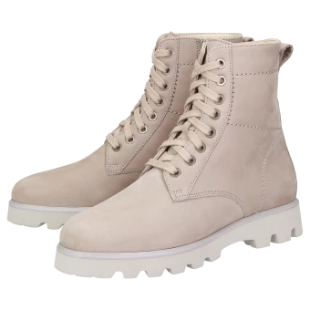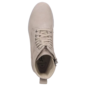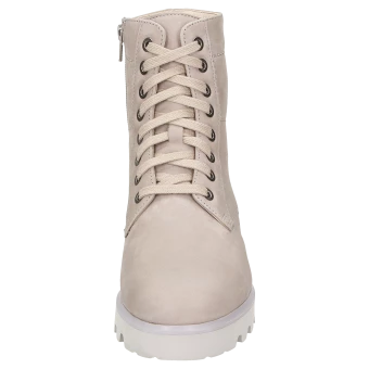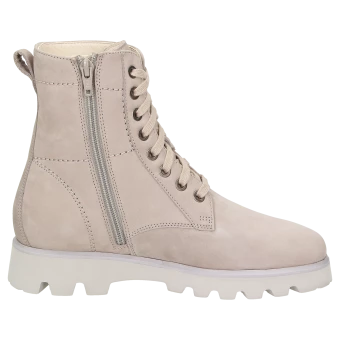 Bottine à lacets pour femme au chaussant H bien large avec fermeture éclair intérieure supplémentaire, en cuir nubuck de vachette finement poncé, intérieur en cuir de veau et doublure en tissu stretch sur l’avant-pied. Convient aux personnes souffrant d’hallux valgus ! La première de propreté rembourrée et revêtue de cuir peut être retirée pour la remplacer par une semelle sur mesure. La solide semelle extérieure profilée en caoutchouc léger avec trépointe appliquée apporte la touche finale au modèle.