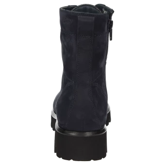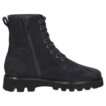 Bottine à lacets pour femme au chaussant H bien large avec fermeture éclair intérieure supplémentaire, en cuir nubuck de vachette finement poncé, intérieur en cuir de veau et doublure en tissu stretch sur l’avant-pied. Convient aux personnes souffrant d’hallux valgus ! La première de propreté rembourrée et revêtue de cuir peut être retirée pour la remplacer par une semelle sur mesure. La solide semelle extérieure profilée en caoutchouc léger avec trépointe appliquée apporte la touche finale au modèle.