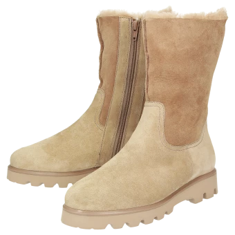 Botte pour femme au chaussant H bien large avec fermeture éclair intérieure, en cuir velours de veau très fin et peau d’agneau velours, intérieur doublé en peau d’agneau. La première de propreté rembourrée et revêtue de feutre peut être retirée pour la remplacer par une semelle sur mesure. La solide semelle extérieure profilée en caoutchouc léger avec trépointe appliquée apporte la touche finale au modèle.