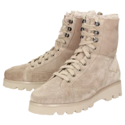Bottine à lacets pour femme au chaussant H bien large, en cuir velours de veau très fin et peau d’agneau velours, intérieur doublé en peau d’agneau. La première de propreté rembourrée et revêtue de feutre peut être retirée pour la remplacer par une semelle sur mesure. La solide semelle extérieure profilée en caoutchouc léger avec trépointe appliquée apporte la touche finale au modèle.