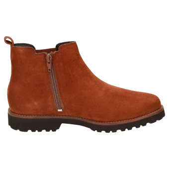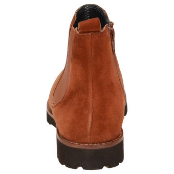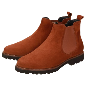 Bottine chelsea pour femme au chaussant H extra-large, avec empiècement élastique sur le côté et fermeture éclair, tirant au talon. Fabriquée en cuir velours d’agneau fin. Intérieur cuir avec doublure en tissu stretch à l’avant. Convient aux pieds avec hallux valgus ! La première de propreté rembourrée et revêtue de cuir peut être retirée pour la remplacer par une semelle sur mesure. La semelle extérieure profilée en caoutchouc léger est dans le ton de l’automne avec sa trépointe cuir marquante.