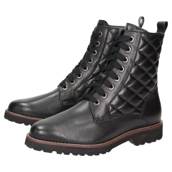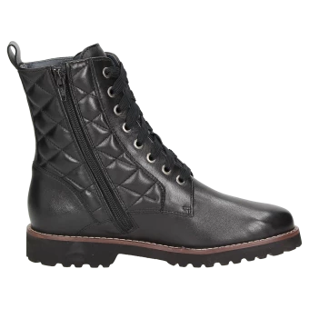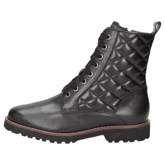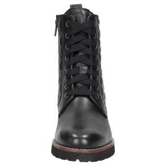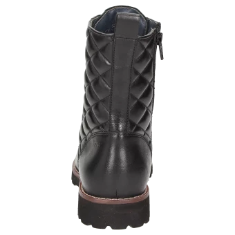 Bottine à lacets pour femme avec fermeture éclair intérieure supplémentaire, chaussant H extra-large, allure tendance avec son motif piqué à losanges matelassés sur la tige. Fabriquée en cuir nappa d’agneau souple, intérieur cuir avec doublure en tissu stretch à l’avant du pied. Convient aux personnes souffrant d’hallux valgus ! La première de propreté rembourrée et revêtue de cuir peut être retirée pour la remplacer par une semelle sur mesure. La semelle extérieure profilée en caoutchouc léger est dans le ton de l’automne avec sa trépointe cuir marquante.