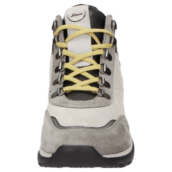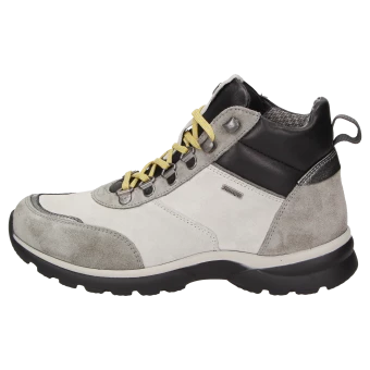 Chaussure montante d’allure sportive pour femme, mélange de cuir de veau et de cuir velours de veau fin, coupe H extra-large. Doublure tissu avec membrane Tex imperméable, semelle intérieure revêtue de cuir et amovible afin de pouvoir la remplacer aisément par une semelle sur mesure, talon rembourré à forme remontante pour un chaussant parfait. Très bon maintien grâce au laçage de style ghilie. La semelle extérieure légère en caoutchouc en fait la chaussure idéale pour vous accompagner tout au long de la journée.