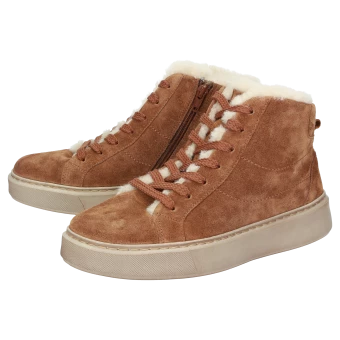 Confortable bottine à lacets pour femme de la collection Til Schweiger en cuir velours de veau fin avec semelle extérieure tendance en caoutchouc léger. La fermeture éclair sur le côté facilite l’enfilage et la forme classique de grande qualité garantit un confort remarquable. Avec sa doublure douillette et chaude en fourrure d’agneau, c’est le compagnon idéal par temps froid. La semelle intérieure amovible recouverte de peau d’agneau peut être remplacée par une semelle sur mesure de manière à s’adapter parfaitement aux besoins de vos pieds.