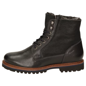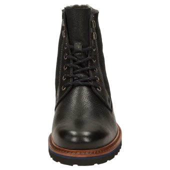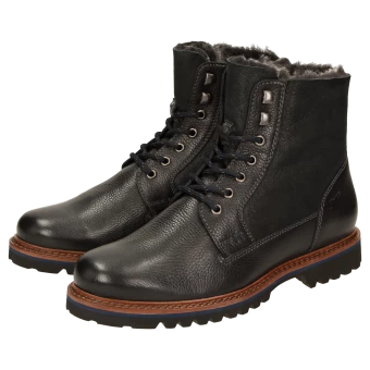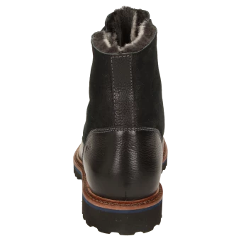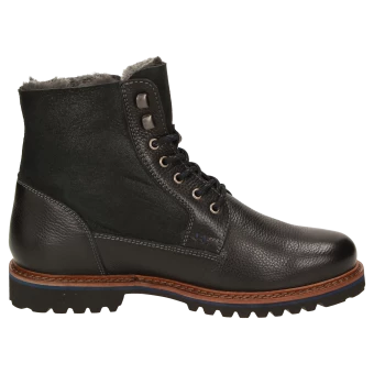 Bottine d’hiver de forme large H et doublure douillette en fourrure d’agneau pour les jours de grand froid : Botte à lacets pour homme combinant cuir de veau à l’aspect rustique et cuir velours d’agneau avec semelle intérieure amovible revêtue de feutre – adaptée également aux semelles orthopédiques. La semelle profilée en caoutchouc confère à la chaussure un bon confort de marche. Parfaite pour tout ceux qui apprécient le confort !