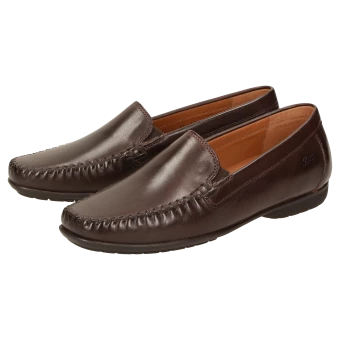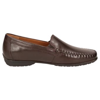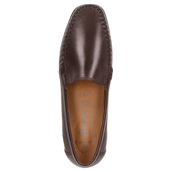 Mocassin loafer pour femme au fabuleux confort et au chaussant parfait, en largeur H pour les cou-de-pied forts, en cuir de veau d’une élégance intemporelle. Doublure en cuir et première de propreté au rembourrage moelleux revêtue de cuir sur toute sa longueur. Semelle extérieure fine et souple en caoutchouc avec talon plat. Ce mocassin typique de la marque Sioux est un grand succès de la collection pour femmes.