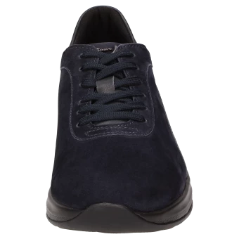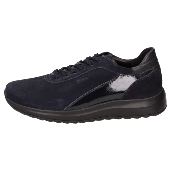 Sneaker pour femme au chaussant H confortable avec laçage richelieu, en cuir velours d’agneau très souple et cuir verni de veau. Intérieur cuir avec doublure en tissu stretch à l’avant. Convient aux pieds avec hallux valgus ! La première de propreté rembourrée et revêtue de cuir peut être retirée pour la remplacer par une semelle sur mesure. Semelle d’usure en caoutchouc au profil marquant avec garnissage en mousse bien souple pour absorber les chocs.