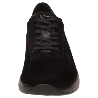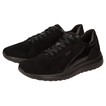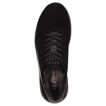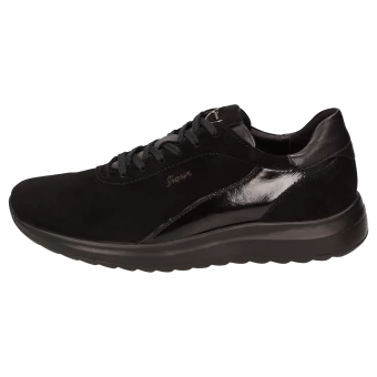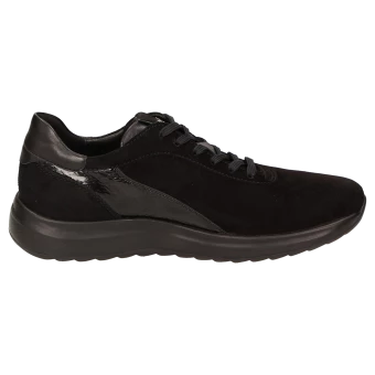 Sneaker pour femme au chaussant H confortable avec laçage richelieu, en cuir velours d’agneau très souple et cuir verni de veau. Intérieur cuir avec doublure en tissu stretch à l’avant. Convient aux pieds avec hallux valgus ! La première de propreté rembourrée et revêtue de cuir peut être retirée pour la remplacer par une semelle sur mesure. Semelle d’usure en caoutchouc au profil marquant avec garnissage en mousse bien souple pour absorber les chocs.