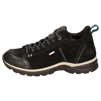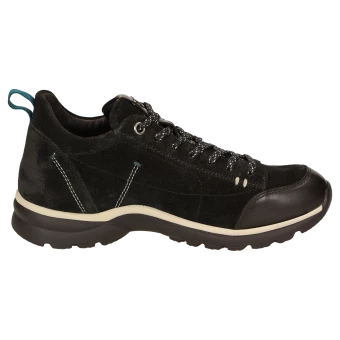 Chaussure à lacets sport pour femme, confectionnée dans un mélange de cuir de veau et cuir velours de veau fin, coupe H extra-large. Doublure tissu avec membrane Tex imperméable, semelle intérieure revêtue de cuir et amovible afin de pouvoir la remplacer aisément par une semelle sur mesure, talon rembourré surélevé pour un chaussant parfait. La semelle extérieure légère en caoutchouc en fait la chaussure idéale pour vous accompagner tout au long de la journée.