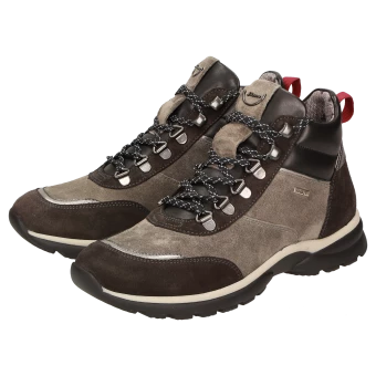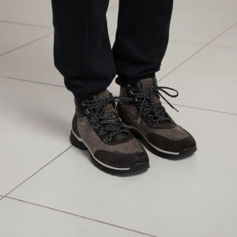 Chaussure à lacets montante pour femme de style sportif, confectionnée dans un mélange de cuir de veau et cuir velours de veau fin, coupe H extra-large. Doublure tissu avec membrane Tex imperméable, semelle intérieure revêtue de cuir et amovible afin de pouvoir la remplacer aisément par une semelle sur mesure, talon rembourré surélevé pour un chaussant parfait. Très bon maintien grâce au laçage de style ghilie. Sa semelle extérieure légère en caoutchouc en fait la chaussure idéale pour vous accompagner tout au long de la journée. Le superbe cuir de veau velours provient de la tannerie Oehler de Marbach (Bade-Wurtemberg), à une vingtaine de kilomètres du siège de Sioux. La tannerie Oehler existe depuis 1823. Aujourd’hui dirigée par la 6e génération, c’est la dernière tannerie de cuir velours en Allemagne. Elle travaille des matières premières en provenance d’Europe et le cuir est tanné et traité en Allemagne. Il s’agit donc de produits « made in Germany », conformes aux exigences de qualité et de responsabilité sociétale les plus strictes. Les superbes cuirs suédés utilisés dans les ateliers Oehler sont teints dans la masse et hydrophobes. Ainsi, ils sont durablement déperlants sans nécessiter d’imprégnation externe.