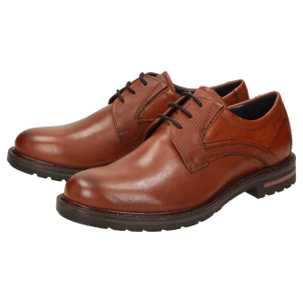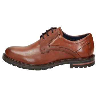 Modèle d’allure sportive au chaussant H bien large pour vous accompagner tout au long de la journée : cette chaussure à lacets pour homme en cuir de veau poli possède une semelle intérieure amovible de manière à pouvoir la remplacer par des semelles sur mesure. La semelle extérieure profilée en caoutchouc assure de bonnes sensations en marchant. La chaussure idéale pour tous ceux qui recherchent le confort !