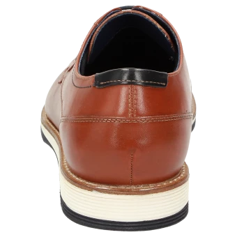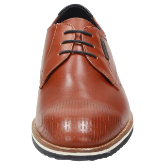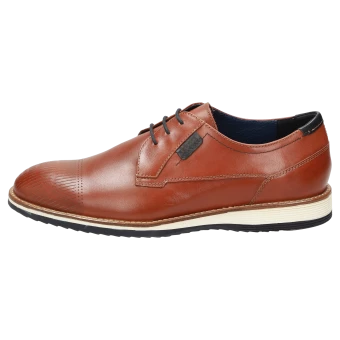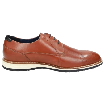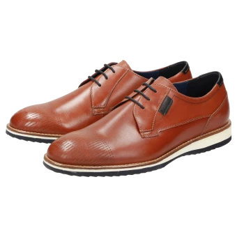 Chaussure à lacets légère pour homme, en cuir de veau naturel, agrémentée d’un bout à découpe laser. Doublée en tissu bien extensible au niveau de l’avant-pied et en cuir de veau sur les quartiers, avec une semelle intérieure amovible revêtue de cuir pouvant être facilement remplacée par une semelle sur mesure. La semelle extérieure légère en caoutchouc apporte la touche finale avec sa trépointe appliquée gaufrée.