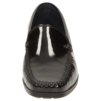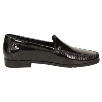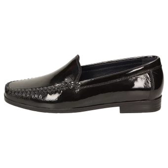 Mocassin pour femme de largeur F au confort fabuleux et au chaussant parfait, en cuir verni de veau d’une élégance intemporelle. Doublure en cuir et première de propreté au rembourrage moelleux, revêtue de cuir sur toute sa longueur. Semelle extérieure souple en caoutchouc avec talon plat. Ce mocassin typique de la marque Sioux est un grand succès de la collection pour femmes.