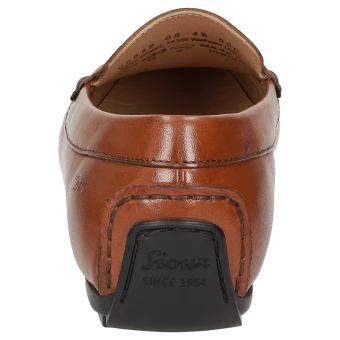 Mocassin plat pour femme confectionné selon la méthode traditionnelle, en cuir de veau naturel avec ornement penny loafer. Doublure intérieure tout cuir avec première de propreté matelassée en cuir, facile à remplacer par une semelle sur mesure. Semelle extérieure en caoutchouc souple et plate, remontant au niveau du talon pour la conduite. Le chaussant G large assure une liberté optimale au niveau des orteils.