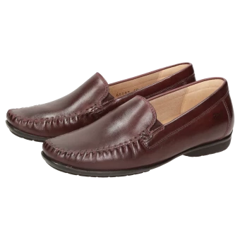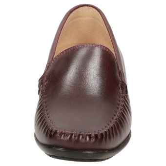 Mocassin loafer pour femme au fabuleux confort et au chaussant parfait, en largeur H pour les cou-de-pied forts, en cuir de veau d’une élégance intemporelle. Doublure en cuir et première de propreté au rembourrage moelleux revêtue de cuir sur toute sa longueur. Semelle extérieure fine et souple en caoutchouc avec talon plat. Ce mocassin typique de la marque Sioux est un grand succès de la collection pour femmes.
