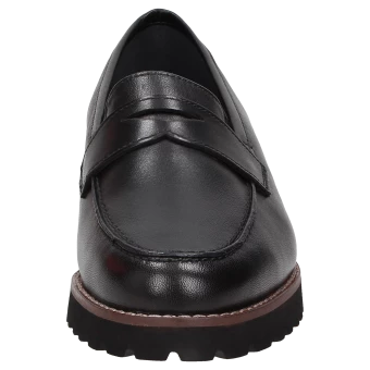 Mocassin pour femme au chaussant H extra-large, avec ornement penny loafer. Fabriqué en cuir nappa d’agneau fin, intérieur cuir avec doublure en tissu stretch à l’avant du pied. Convient aux personnes souffrant d’hallux valgus ! La première de propreté rembourrée et revêtue de cuir peut être retirée pour la remplacer par une semelle sur mesure. La semelle extérieure profilée en caoutchouc léger est dans le ton de l’automne avec sa trépointe cuir marquante.