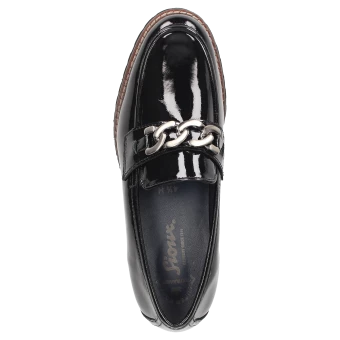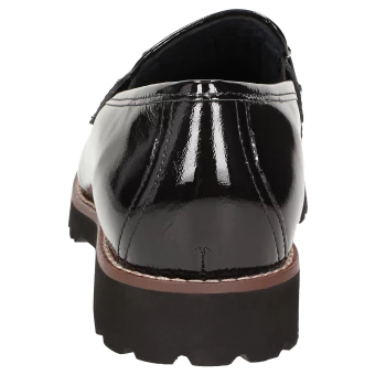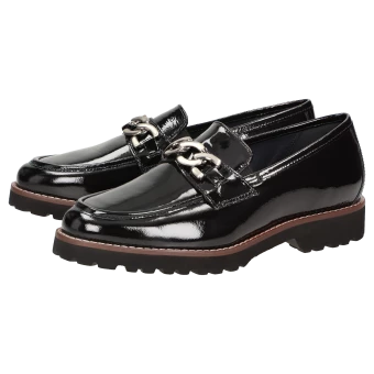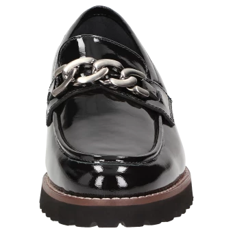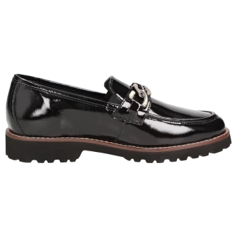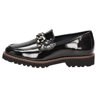 Mocassin pour femme de forme H extra-large, avec ornement métallique classique et empiècements élastiques sur la languette pour un chaussant optimal. Fabriqué en cuir verni fripé, intérieur en cuir avec doublure en tissu stretch sur l’avant-pied. Convient aux personnes souffrant d’hallux valgus ! La première de propreté rembourrée et revêtue de cuir peut être retirée pour la remplacer par une semelle sur mesure. La semelle extérieure profilée en caoutchouc léger est dans le ton de l’automne avec sa trépointe cuir marquante.