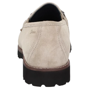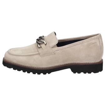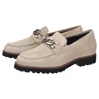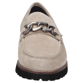 Mocassin pour femme de forme H extra-large, avec ornement métallique classique et empiècements élastiques sur la languette pour un chaussant optimal. Fabriqué en cuir velours d’agneau très souple, intérieur en cuir avec doublure en tissu stretch sur l’avant-pied. Convient aux personnes souffrant d’hallux valgus ! La première de propreté rembourrée et revêtue de cuir peut être retirée pour la remplacer par une semelle sur mesure. La semelle extérieure profilée en caoutchouc léger est dans le ton de l’automne avec sa trépointe cuir marquante.