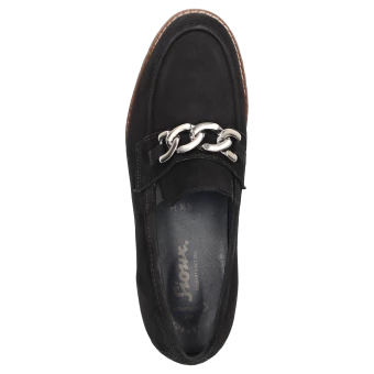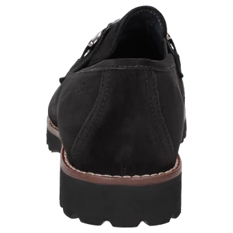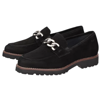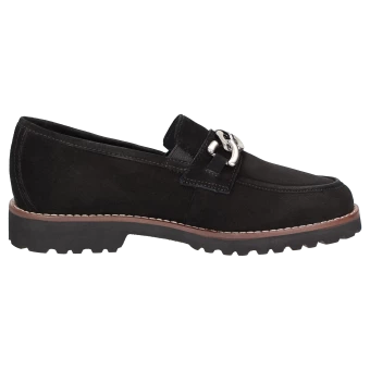 Mocassin pour femme de forme H extra-large, avec ornement métallique classique et empiècements élastiques sur la languette pour un chaussant optimal. Fabriqué en cuir velours d’agneau très souple, intérieur en cuir avec doublure en tissu stretch sur l’avant-pied. Convient aux personnes souffrant d’hallux valgus ! La première de propreté rembourrée et revêtue de cuir peut être retirée pour la remplacer par une semelle sur mesure. La semelle extérieure profilée en caoutchouc léger est dans le ton de l’automne avec sa trépointe cuir marquante.