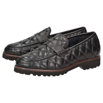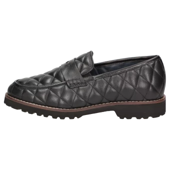 Mocassin pour femme de forme H extra-large, avec ornement penny loafer, allure tendance grâce à son motif piqué à losanges matelassés, petits empiècements élastiques sur la languette pour un chaussant optimal. Fabriqué en cuir d’agneau très souple, intérieur en cuir avec doublure en tissu stretch sur l’avant-pied. Convient aux personnes souffrant d’hallux valgus ! La première de propreté rembourrée et revêtue de cuir peut être retirée pour la remplacer par une semelle sur mesure. La semelle extérieure profilée en caoutchouc léger est dans le ton de l’automne avec sa trépointe cuir marquante.