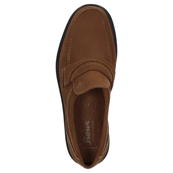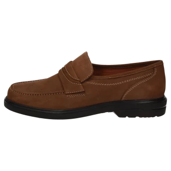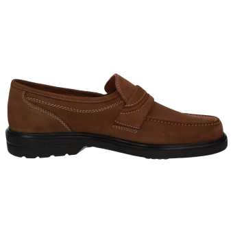 Mocassin de ville classique en cuir nubuck légèrement grenu, chaussant ultra-large. La semelle intérieure amovible de grande qualité et la semelle extérieure légère à coussin d’air assurent un grand confort en marchant. Cette chaussure pour homme est de largeur J. Cela signifie qu’elle est parfaite pour les personnes aux pieds forts qui ont besoin de modèles particulièrement larges. Si vous avez des pieds fins ou normaux (largeur G) ou même simplement un peu forts (largeur H), ce modèle sera trop large.