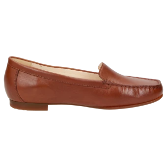 Le célèbre loafer pour femme, cousu à la main selon la méthode de type mocassin, en chaussant de largeur F. Ce modèle à l’allure décontractée est fabriqué en cuir nappa d’agneau fin avec une doublure en cuir. La semelle intérieure amovible rembourrée et la semelle extérieure légère en caoutchouc, idéale en été, contribuent encore à son confort. La chaussure favorite de beaucoup de nos clientes !