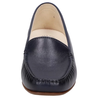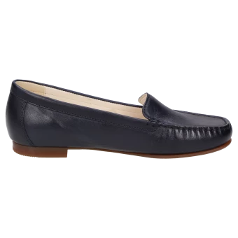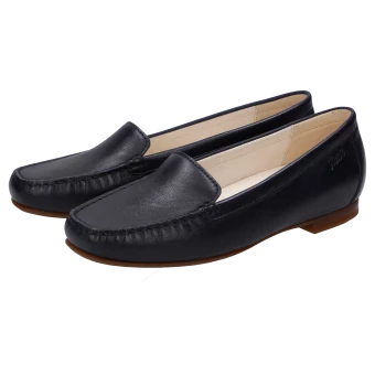 Le célèbre loafer pour femme, cousu à la main selon la méthode de type mocassin, en chaussant de largeur F. Ce modèle à l’allure décontractée est fabriqué en cuir nappa d’agneau fin avec une doublure en cuir. La semelle intérieure amovible rembourrée et la semelle extérieure légère en caoutchouc, idéale en été, contribuent encore à son confort. La chaussure favorite de beaucoup de nos clientes !