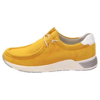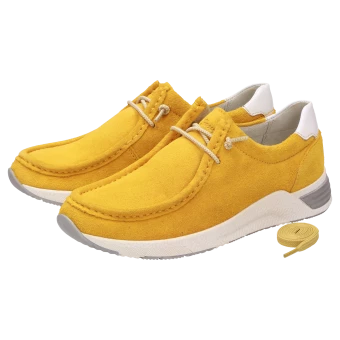 Mocassin casual pour femme, en cuir velours de veau fin avec application en cuir verni sur le talon et contrefort matelassé. La semelle extérieure sportive en caoutchouc à profil antidérapant pose de nouvelles bases en matière de look et de confort. Vous avez le choix entre un élastique confortable ou un lacet classique. Ce MokRunner est entièrement doublé en tissu microfibre et doté d’une semelle intérieure en cuir de veau avec rembourrage moelleux, pouvant être facilement remplacée par une semelle sur mesure. Le daim de veau de haute qualité de ce modèle provient de la tannerie Oehler à Marbach, il est donc Made in Germany et répond aux normes de qualité et aux normes sociales les plus élevées dans le monde entier.