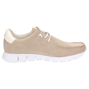 Ce mocassin léger pour homme à porter pieds nus fera votre bonheur lors des chaudes journées d’été 2022. La toile délavée souple entièrement biodégradable, la doublure en tissu fonctionnel et la semelle intérieure amovible rembourrée assurent un confort total. Légère et flexible, la semelle extérieure MokRunner amortit admirablement les chocs quel que soit le support.