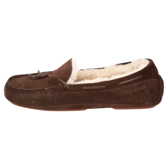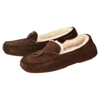 Une chaussure d’intérieur qui constitue également une très belle idée de cadeau : ce mocassin plat pour femme est fabriqué en cuir velours de veau fin selon la méthode traditionnelle, avec des lacets en cuir au contrefort et des bouffettes fantaisie. Il est entièrement doublé en fourrure d’agneau douillette et la première de propreté bien rembourrée est amovible de manière à pouvoir la remplacer par des semelles sur mesure. Semelle extérieure en caoutchouc sans talon, à la fois souple et fine. Le chaussant G assure un confort optimal au niveau des orteils. Le daim de veau de haute qualité de ce modèle provient de la tannerie Oehler à Marbach, il est donc Made in Germany et répond aux normes de qualité et aux normes sociales les plus élevées dans le monde entier.