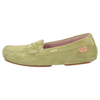 À porter comme chaussure d’intérieur ou soulier léger en été : ce loafer plat pour femme est fabriqué en cuir velours de veau fin selon la méthode traditionnelle du mocassin, avec des ornements sur les côtés. Entièrement doublé en tissu éponge, avec première de propreté bien rembourrée. Semelle en caoutchouc sans talon, à la fois souple et fine. Le chaussant G assure un confort optimal au niveau des orteils. Le superbe cuir de veau velours provient de la tannerie Oehler de Marbach (Bade-Wurtemberg), à une vingtaine de kilomètres du siège de Sioux. La tannerie Oehler existe depuis 1823. Aujourd’hui dirigée par la 6e génération, c’est la dernière tannerie de cuir velours en Allemagne. Elle travaille des matières premières en provenance d’Europe et le cuir est tanné et traité en Allemagne. Il s’agit donc de produits « made in Germany », conformes aux exigences de qualité et de responsabilité sociétale les plus strictes. Les superbes cuirs suédés utilisés dans les ateliers Oehler sont teints dans la masse et hydrophobes. Ainsi, ils sont durablement déperlants sans nécessiter d’imprégnation externe.