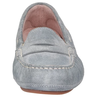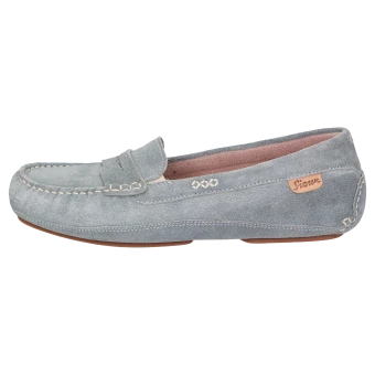 À porter comme chaussure d’intérieur ou soulier léger en été : ce loafer plat pour femme est fabriqué en cuir velours de veau fin selon la méthode traditionnelle du mocassin, avec des ornements sur les côtés. Entièrement doublé en tissu éponge, avec première de propreté bien rembourrée. Semelle en caoutchouc sans talon, à la fois souple et fine. Le chaussant G assure un confort optimal au niveau des orteils. Le superbe cuir de veau velours provient de la tannerie Oehler de Marbach (Bade-Wurtemberg), à une vingtaine de kilomètres du siège de Sioux. La tannerie Oehler existe depuis 1823. Aujourd’hui dirigée par la 6e génération, c’est la dernière tannerie de cuir velours en Allemagne. Elle travaille des matières premières en provenance d’Europe et le cuir est tanné et traité en Allemagne. Il s’agit donc de produits « made in Germany », conformes aux exigences de qualité et de responsabilité sociétale les plus strictes. Les superbes cuirs suédés utilisés dans les ateliers Oehler sont teints dans la masse et hydrophobes. Ainsi, ils sont durablement déperlants sans nécessiter d’imprégnation externe.