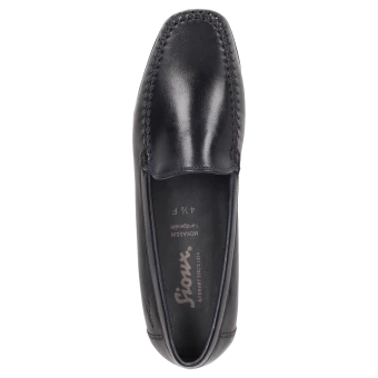 Mocassin loafer extrêmement confortable pour femme en largeur F et en cuir de veau souple pour un chaussant parfait et une élégance intemporelle. Doublure en cuir et semelle intérieure avec rembourrage moelleux revêtue de cuir sur toute sa longueur. Semelle souple en caoutchouc avec talon plat. Un mocassin typique pour femme de la marque Sioux : un modèle prisé depuis des années.