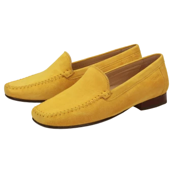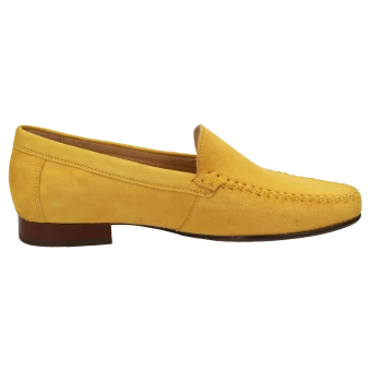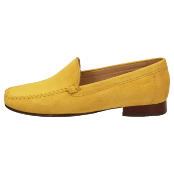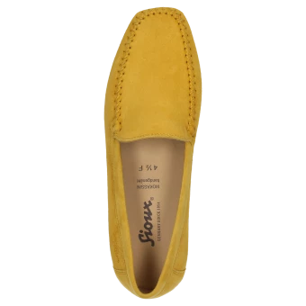 Mocassin loafer extrêmement confortable pour femme en largeur F et en cuir velours de chèvre souple pour un chaussant parfait et une élégance intemporelle. Doublure en cuir et semelle intérieure avec rembourrage moelleux et revêtue de cuir sur toute sa longueur. Semelle légère et fine en caoutchouc avec talon plat. Un mocassin typique pour femme de la marque Sioux : un modèle prisé depuis des années.
