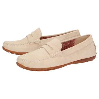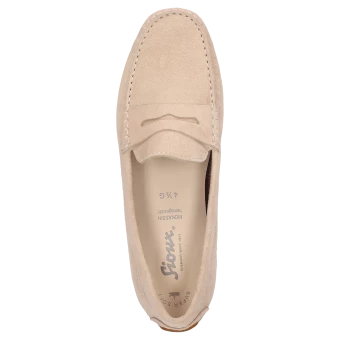 Loafer plat pour femme de type mocassin, en cuir velours de veau souple avec plastron tendance. Entièrement doublé en tissu, avec semelle intérieure rembourrée en cuir de veau à tannage végétal pouvant être aisément remplacée par une semelle sur mesure. Semelle extérieure sans talon en caoutchouc, à la fois souple et fine. Le chaussant G assure un confort optimal au niveau des orteils. Le cuir velours provient de la tannerie Oehler de Marbach (Bade-Wurtemberg), à une vingtaine de kilomètres du siège de Sioux. La tannerie Oehler existe depuis 1823. Aujourd’hui dirigée par la 6e génération, c’est la dernière tannerie de cuir velours en Allemagne. Elle travaille des matières premières en provenance d’Europe et le cuir est tanné et traité en Allemagne. Il s’agit donc de produits « made in Germany », conformes aux exigences de qualité et de responsabilité sociétale les plus strictes. Les superbes cuirs suédés utilisés dans les ateliers Oehler sont teints dans la masse et hydrophobes. Ainsi, ils sont durablement déperlants sans nécessiter d’imprégnation externe.