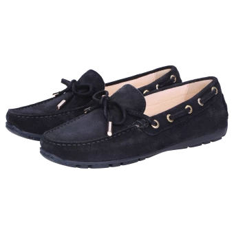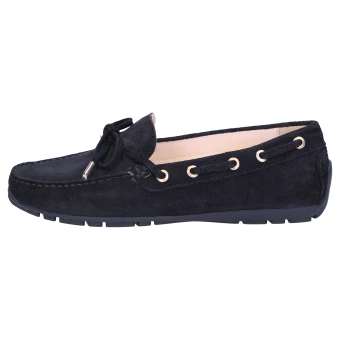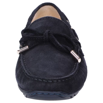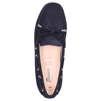 Loafer plat pour femme confectionné selon la méthode de fabrication de type mocassin en cuir velours de veau fin, avec lanières en cuir sur le contour de tige et nud fantaisie sur le dessus. L’intérieur est entièrement cuir et la semelle intérieure matelassée en cuir à tannage végétal peut être aisément remplacée par une semelle sur mesure. Semelle extérieure en caoutchouc sans talon, à la fois souple et fine. Le chaussant G assure un confort optimal au niveau des orteils. Le superbe cuir de veau velours provient de la tannerie Oehler de Marbach (Bade-Wurtemberg), à une vingtaine de kilomètres du siège de Sioux. La tannerie Oehler existe depuis 1823. Aujourd’hui dirigée par la 6e génération, c’est la dernière tannerie de cuir velours en Allemagne. Elle travaille des matières premières en provenance d’Europe et le cuir est tanné et traité en Allemagne. Il s’agit donc de produits « made in Germany », conformes aux exigences de qualité et de responsabilité sociétale les plus strictes. Les superbes cuirs suédés utilisés dans les ateliers Oehler sont teints dans la masse et hydrophobes. Ainsi, ils sont durablement déperlants sans nécessiter d’imprégnation externe.