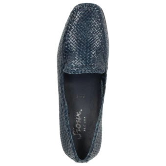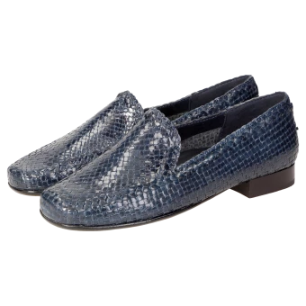 Mocassin Sioux typique pour femme, en cuir de chèvre tressé, semelle fine en caoutchouc. Ce mocassin aux finitions superbes sera du plus bel effet lors des soirées estivales.