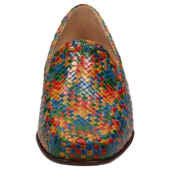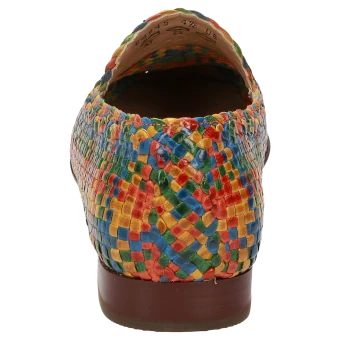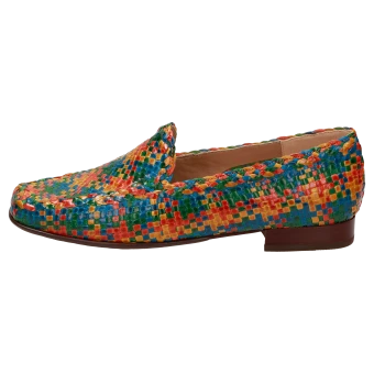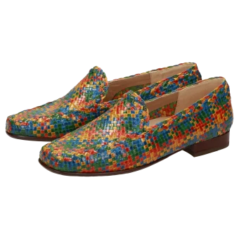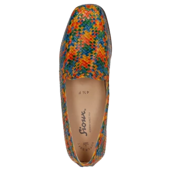 Loafer plat pour femme en cuir de chèvre tressé souple, agrémenté d’une petite bordure sur le contour et le cou-de-pied. Cette chaussure non doublée est idéale à porter pieds nus. L’empeigne est tressée de manière artisanale directement sur l’embauchoir afin de donner au modèle une forme optimale et absolument unique. Semelle intérieure rembourrée en cuir de veau. Semelle extérieure souple et fine en caoutchouc avec un talon légèrement surélevé, largeur F pour pieds normaux.