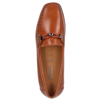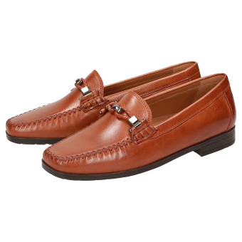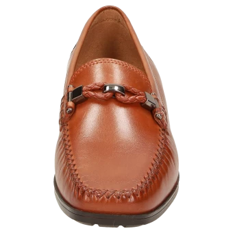 Mocassin pour femme avec ornement tendance et talon plat. Fabrication artisanale en cuir de veau noble, doublure cuir avec première de propreté en cuir rembourrée sur toute sa longueur. La semelle extérieure fine et légère en caoutchouc assure un confort de marche optimal et une allure irréprochable.