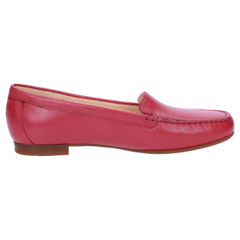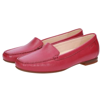 Le célèbre loafer pour femme, cousu à la main selon la méthode caractéristique du mocassin, en chaussant de largeur F. Ce modèle à l’allure décontractée est fabriqué en cuir nappa d’agneau fin avec une doublure en cuir. La semelle intérieure amovible rembourrée et la semelle extérieure légère en caoutchouc, idéale en été, contribuent encore à son confort. La chaussure favorite de beaucoup de nos clientes !