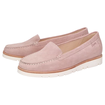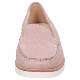 Mocassin casual d’une sobriété classique et d’un confort remarquable. Le cuir velours de veau souple et la doublure en cuir véritable sont l’assurance de sensations exceptionnelles. La semelle intérieure amovible matelassée ajoute encore au confort de ce modèle pour femme, tout comme la semelle extérieure estivale en caoutchouc léger avec sa trépointe en cuir de couleur contrastée.