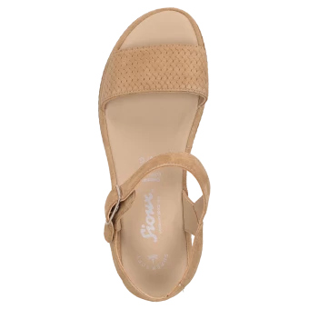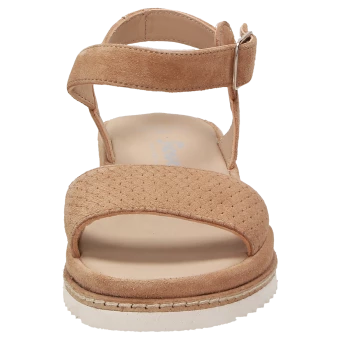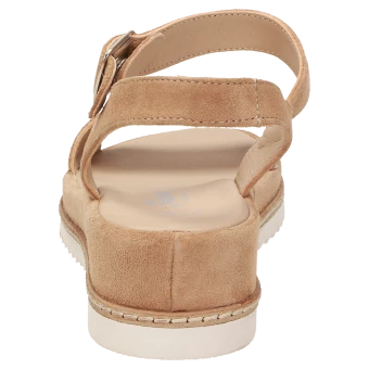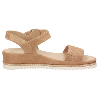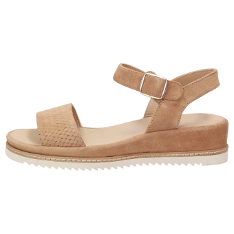 Sandale agréable à porter en cuir velours de chèvre fin avec bride fermant sur le côté et semelle intérieure en cuir au rembourrage très moelleux. Une bande élastique au niveau de la fermeture garantit un ajustement parfait et la semelle amortissante au profil dentelé assure un confort de marche supplémentaire.